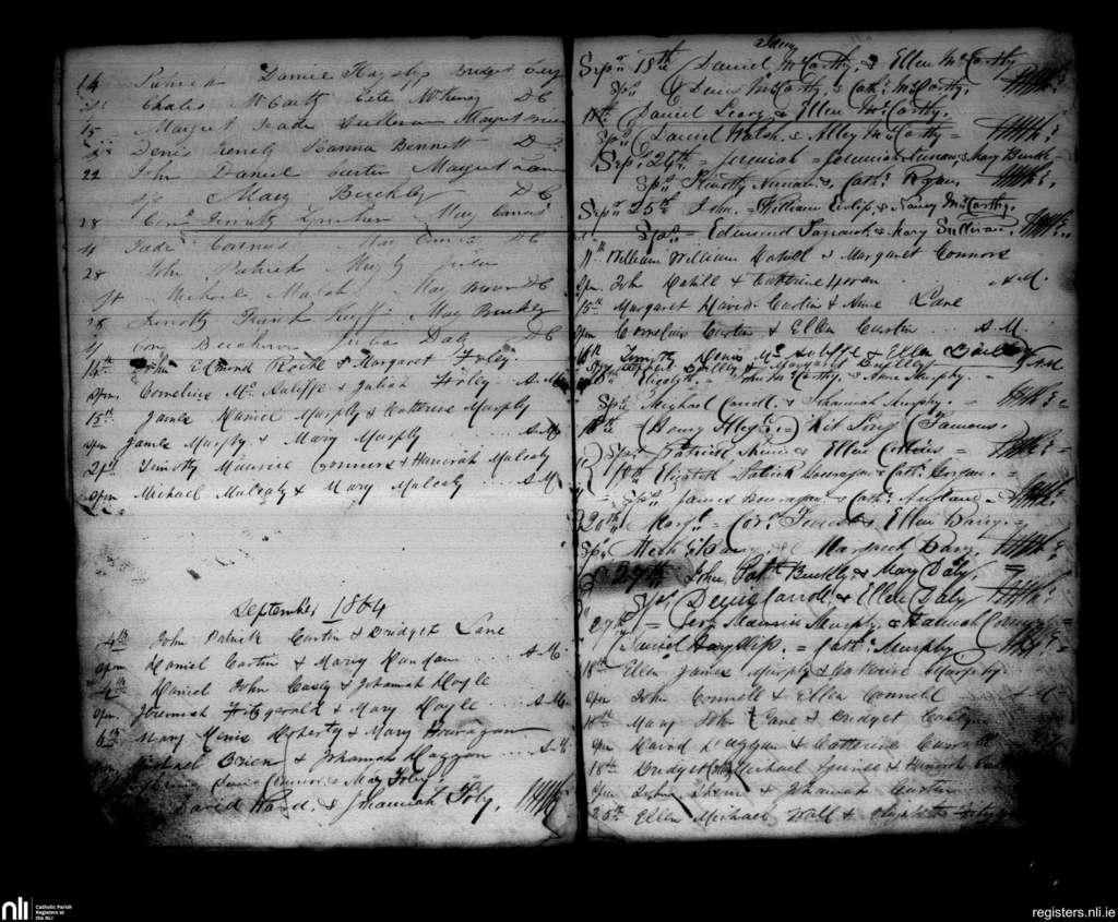Newmarket; County of Cork; Diocese of Cloyne. Baptisms, Aug. 1864 to Sep. 1864