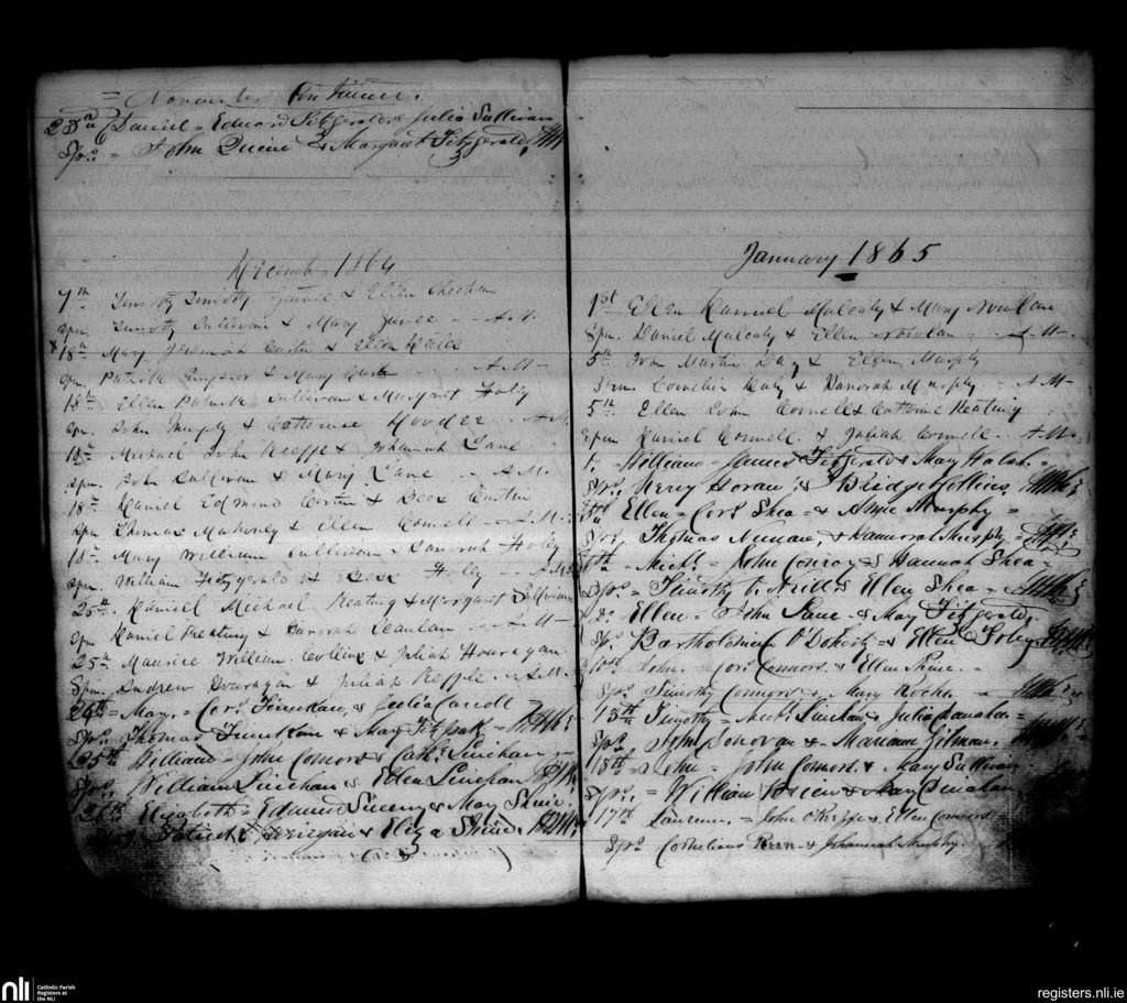 Newmarket; County of Cork; Diocese of Cloyne. Baptisms, Nov. 1864 to Jan. 1865