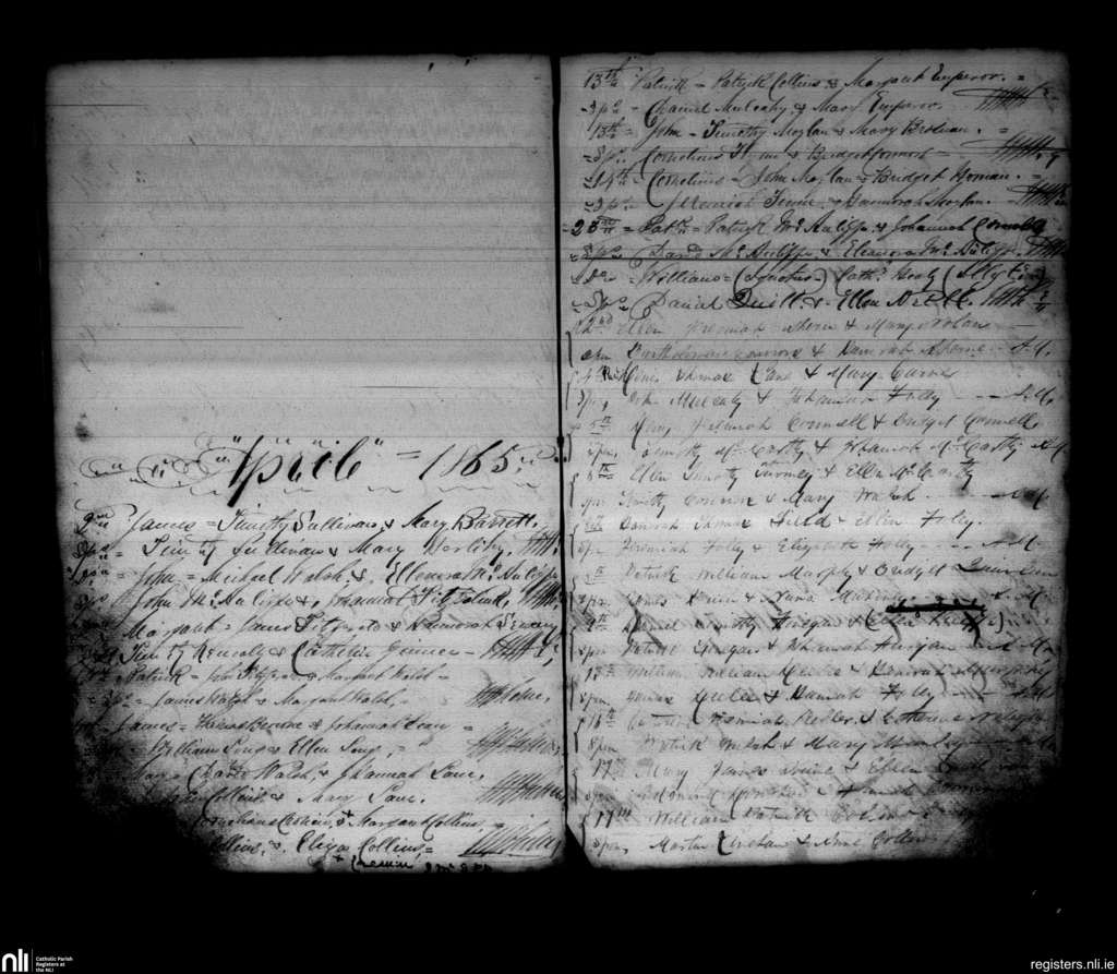 Newmarket; County of Cork; Diocese of Cloyne. Baptisms, Apr. 1865
