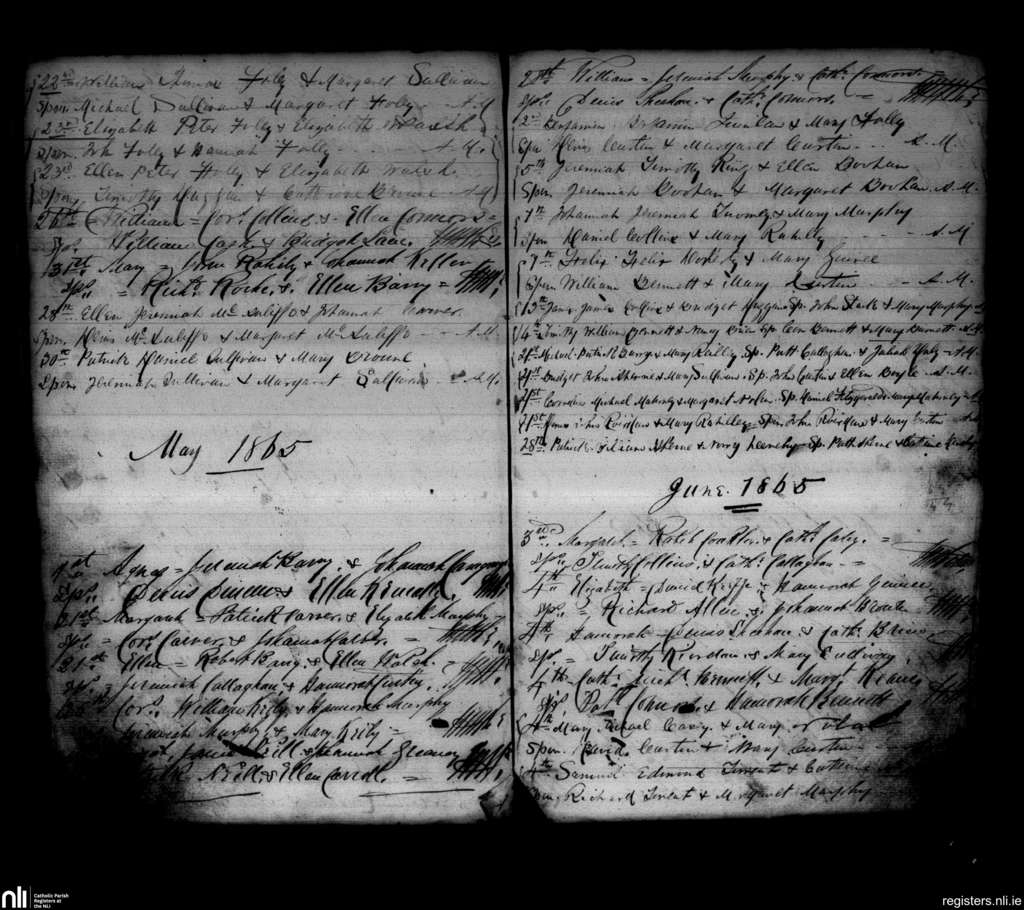Newmarket; County of Cork; Diocese of Cloyne. Baptisms, Apr. 1865 to June 1865