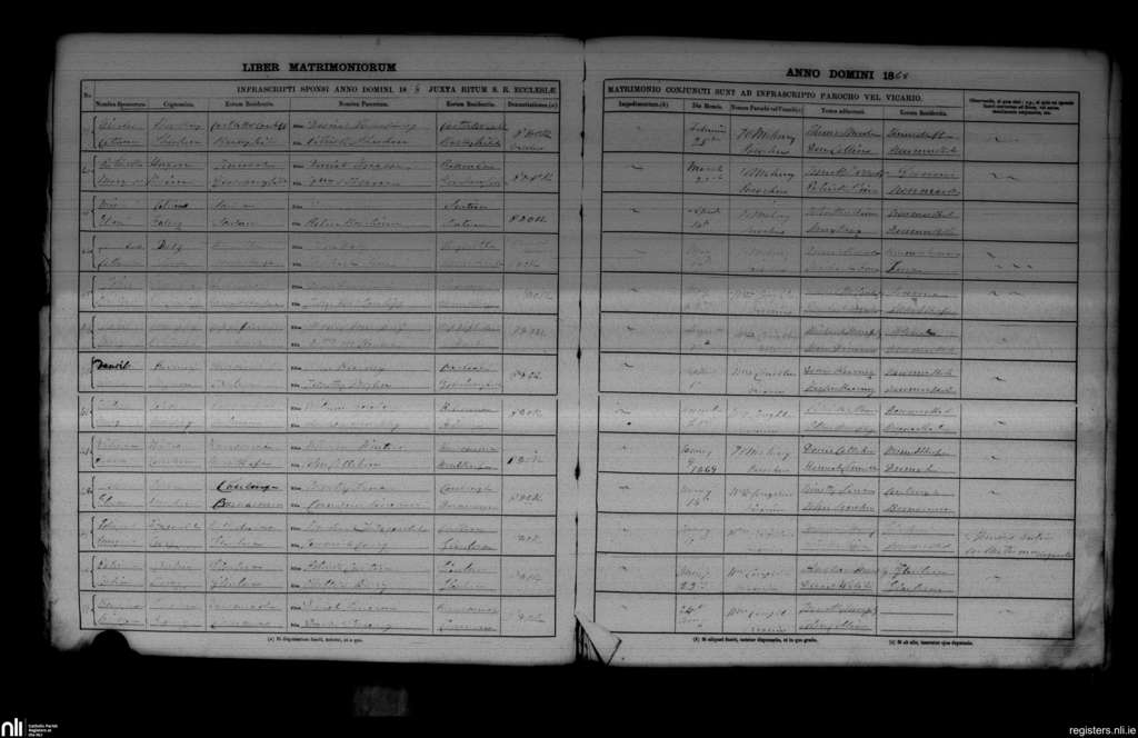 Newmarket; County of Cork; Diocese of Cloyne. Marriages, Feb. 1868 to Jan. 1869