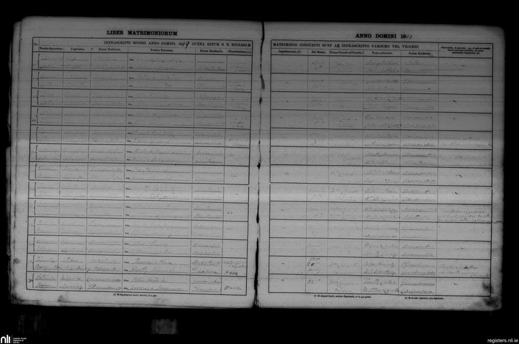 Newmarket; County of Cork; Diocese of Cloyne. Marriages, Apr. 1869 to Jan. 1870