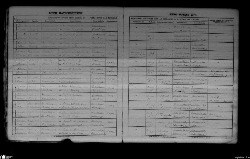 Newmarket; County of Cork; Diocese of Cloyne. Marriages, Feb. 1872 to Nov. 1872