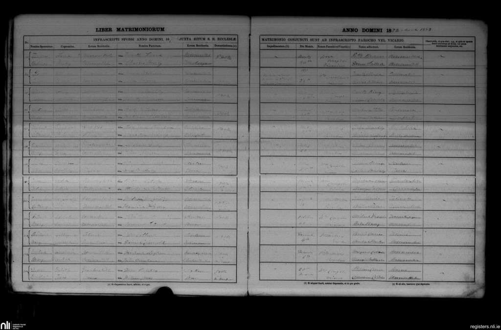 Newmarket; County of Cork; Diocese of Cloyne. Marriages, Nov. 1872 to Jan. 1874