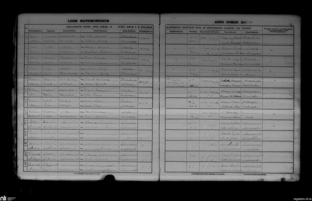 Newmarket; County of Cork; Diocese of Cloyne. Marriages, Feb. 1875 to Feb. 1876