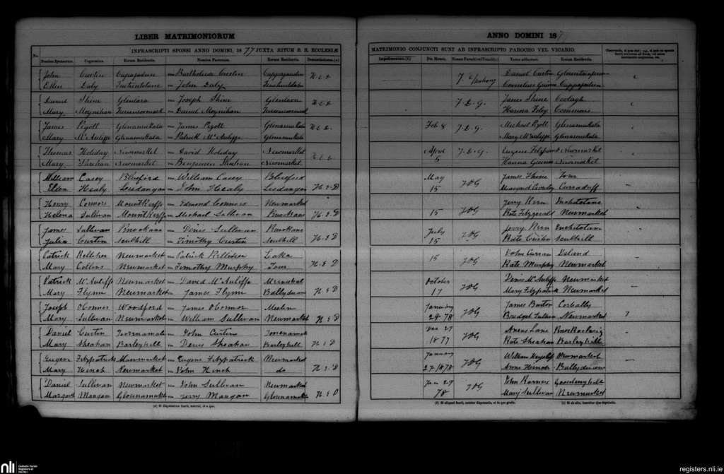 Newmarket; County of Cork; Diocese of Cloyne. Marriages, Feb. 1877 to Jan. 1878