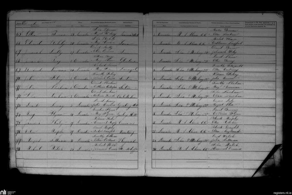 Newmarket; County of Cork; Diocese of Cloyne. Baptisms, Dec. 1866