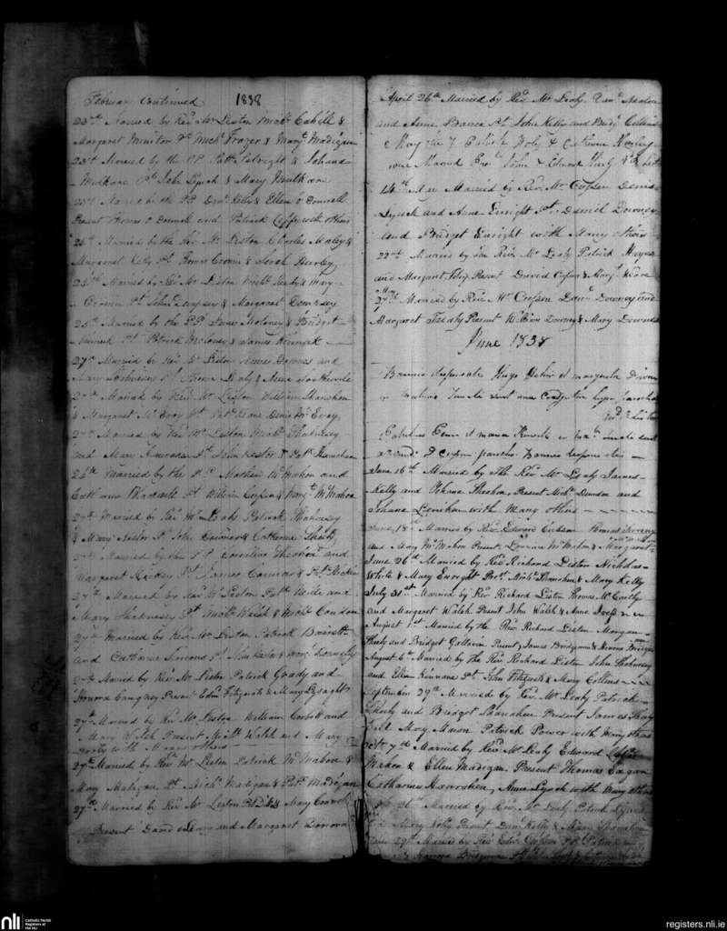 Askeaton; County of Limerick; Diocese of Limerick. Marriages, Feb. 1838 to June 1838