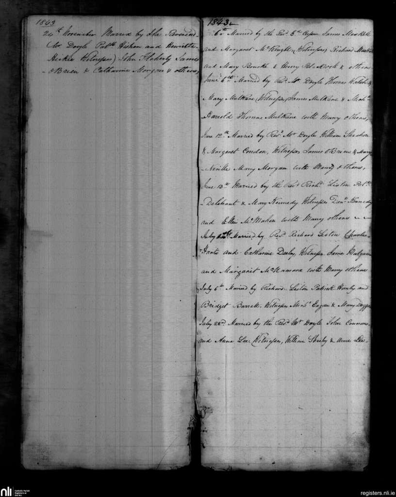 Askeaton; County of Limerick; Diocese of Limerick. Marriages, June 1843 to Nov. 1843