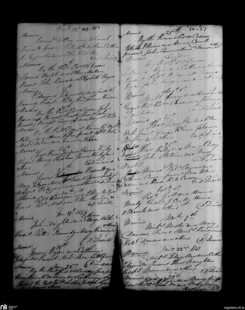 Askeaton; County of Limerick; Diocese of Limerick. Marriages, Nov. 1849 to Jan. 1851