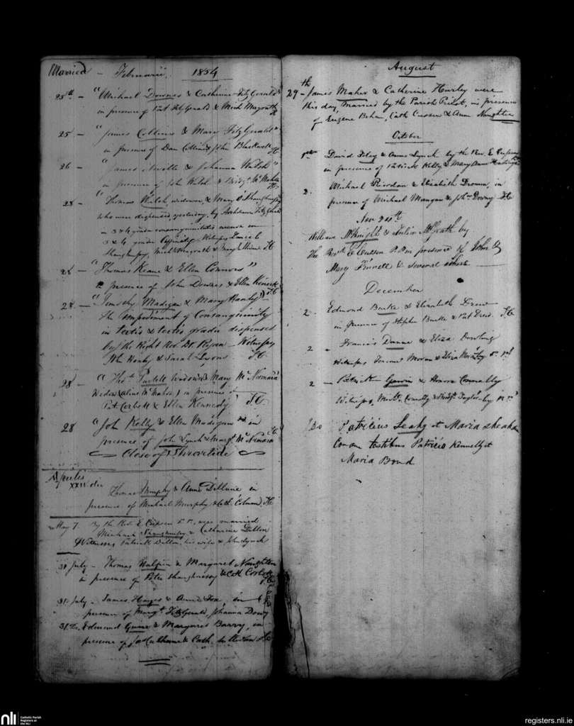 Askeaton; County of Limerick; Diocese of Limerick. Marriages, Feb. 1854 to Nov. 1854