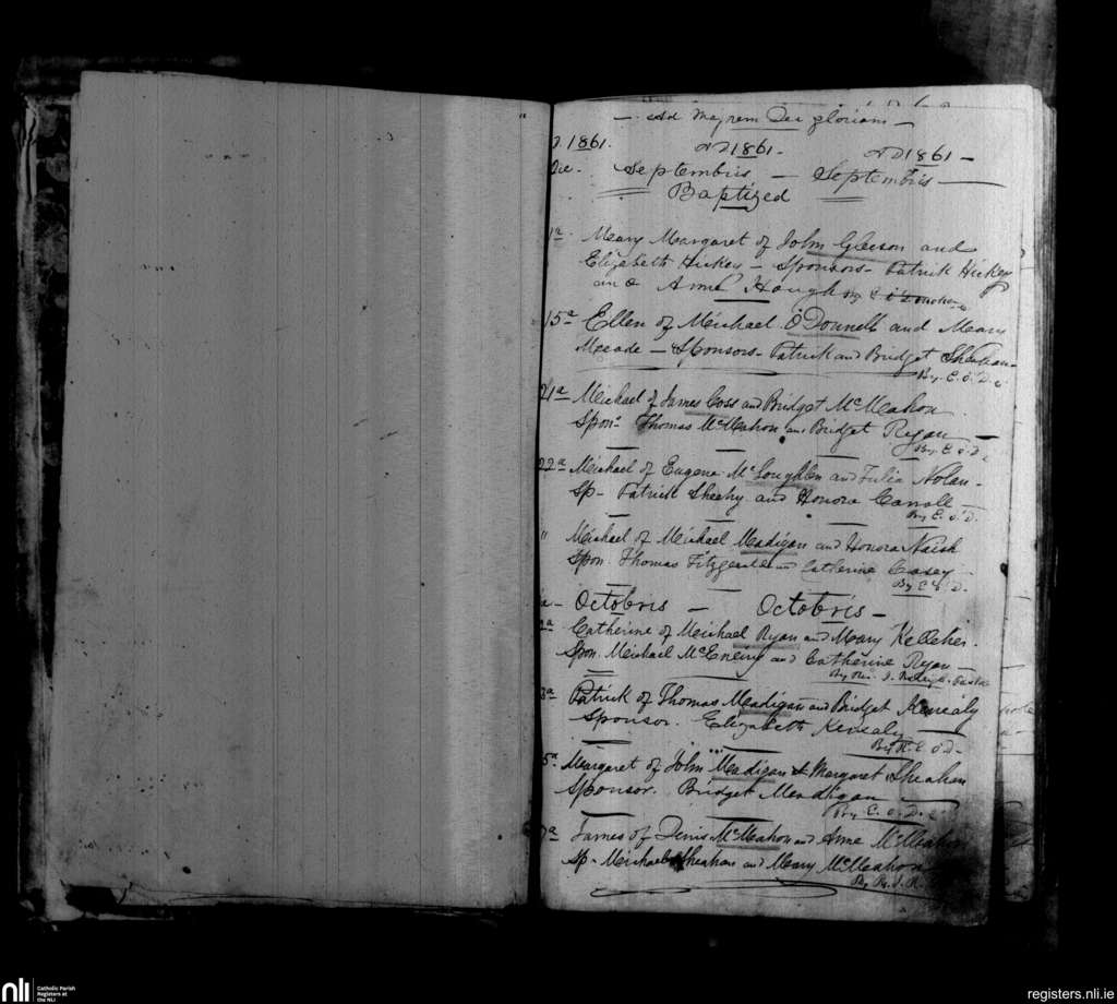 Askeaton; County of Limerick; Diocese of Limerick. Baptisms, Sep. 1861 to Oct. 1861