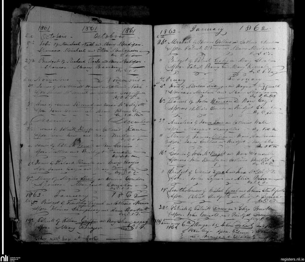 Askeaton; County of Limerick; Diocese of Limerick. Baptisms, Oct. 1861 to Feb. 1862