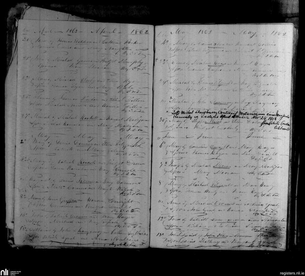 Askeaton; County of Limerick; Diocese of Limerick. Baptisms, Apr. 1862 to June 1862