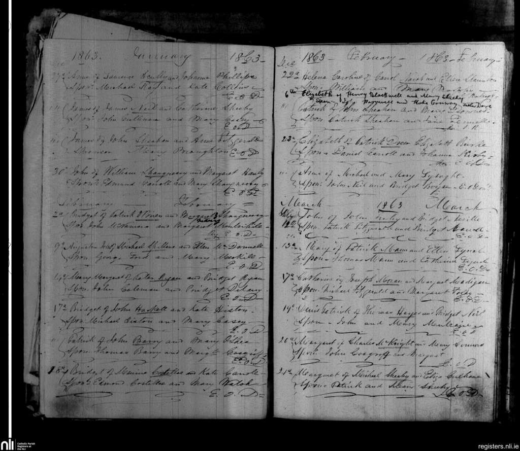 Askeaton; County of Limerick; Diocese of Limerick. Baptisms, Jan. 1863 to Mar. 1863