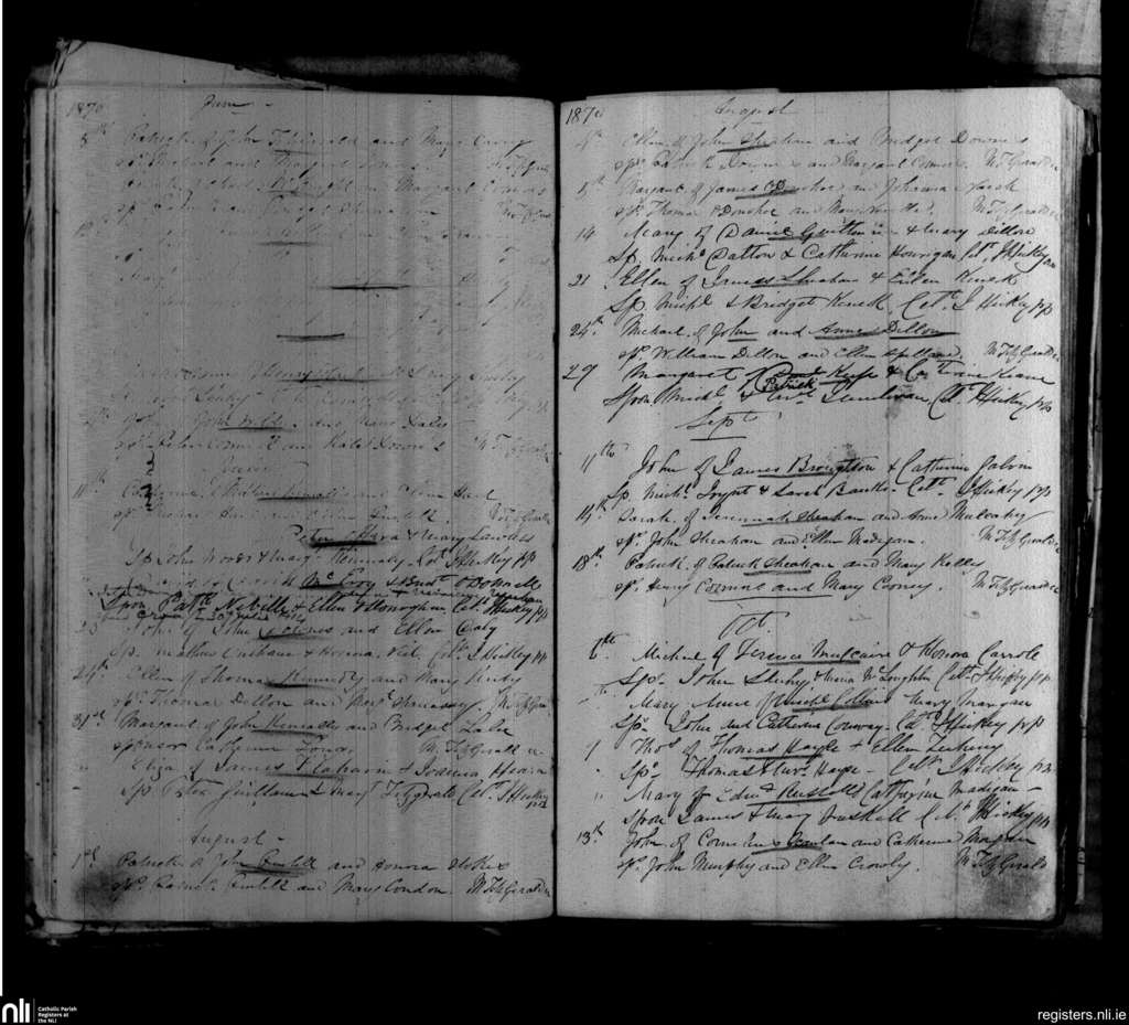 Askeaton; County of Limerick; Diocese of Limerick. Baptisms, June 1870 to Oct. 1870