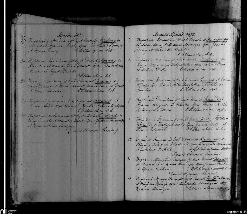 Askeaton; County of Limerick; Diocese of Limerick. Baptisms, Mar. 1872 to Apr. 1872