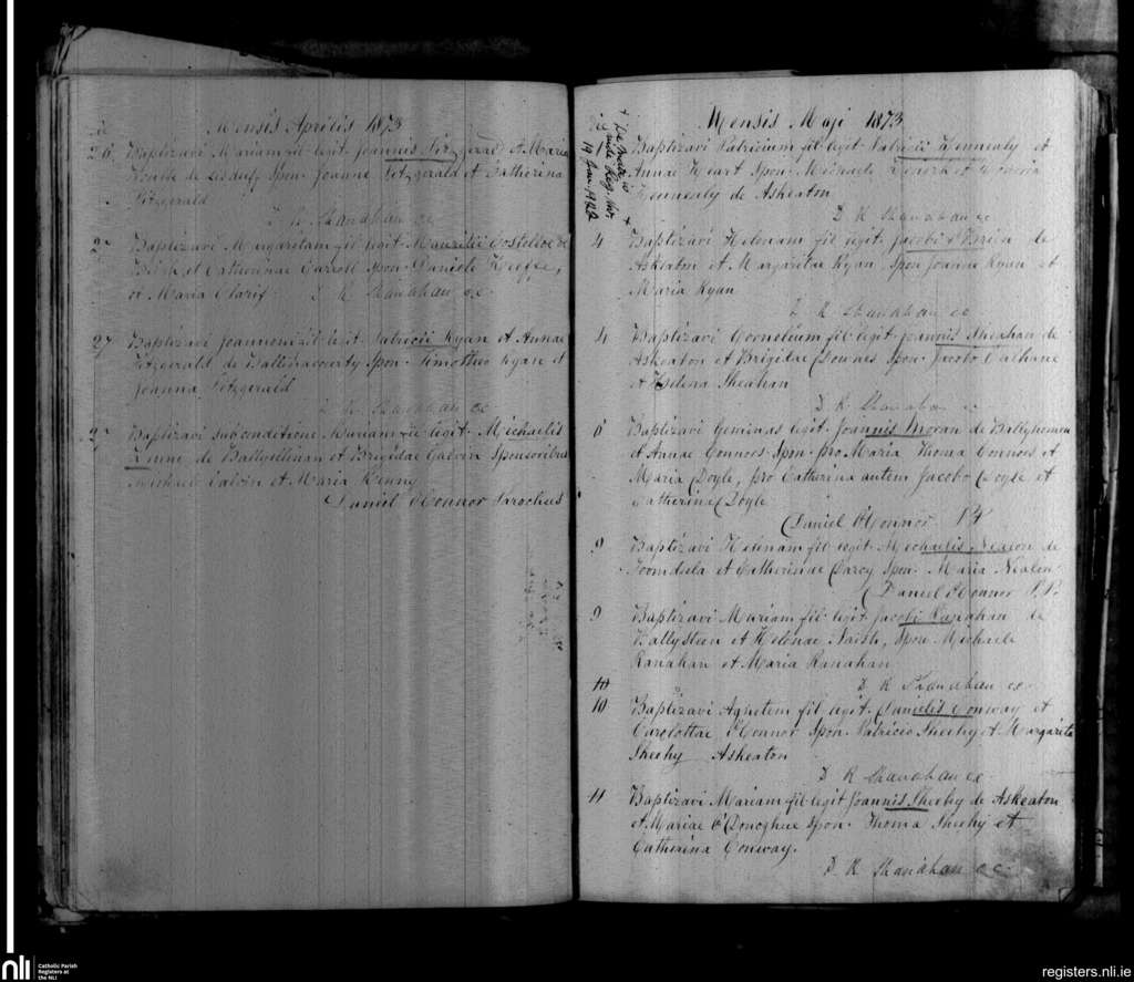 Askeaton; County of Limerick; Diocese of Limerick. Baptisms, Apr. 1873 to May 1873