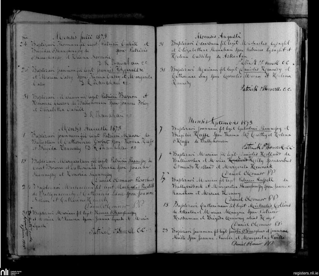 Askeaton; County of Limerick; Diocese of Limerick. Baptisms, July 1873 to Sep. 1873