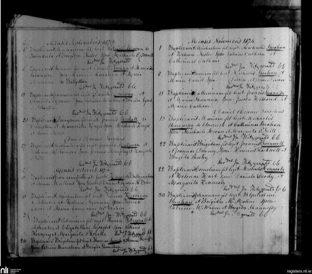Askeaton; County of Limerick; Diocese of Limerick. Baptisms, Sep. 1874 to Nov. 1874