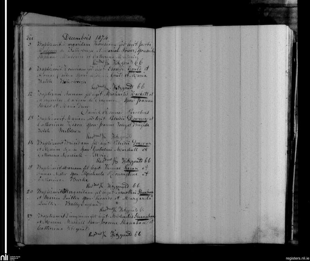 Askeaton; County of Limerick; Diocese of Limerick. Baptisms, Dec. 1874