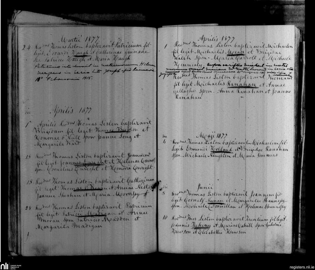 Askeaton; County of Limerick; Diocese of Limerick. Baptisms, Mar. 1877 to June 1877