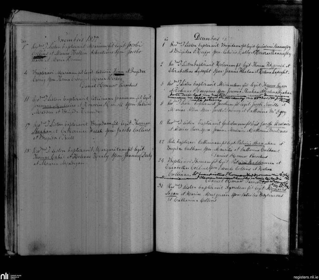 Askeaton; County of Limerick; Diocese of Limerick. Baptisms, Nov. 1877 to Dec. 1877
