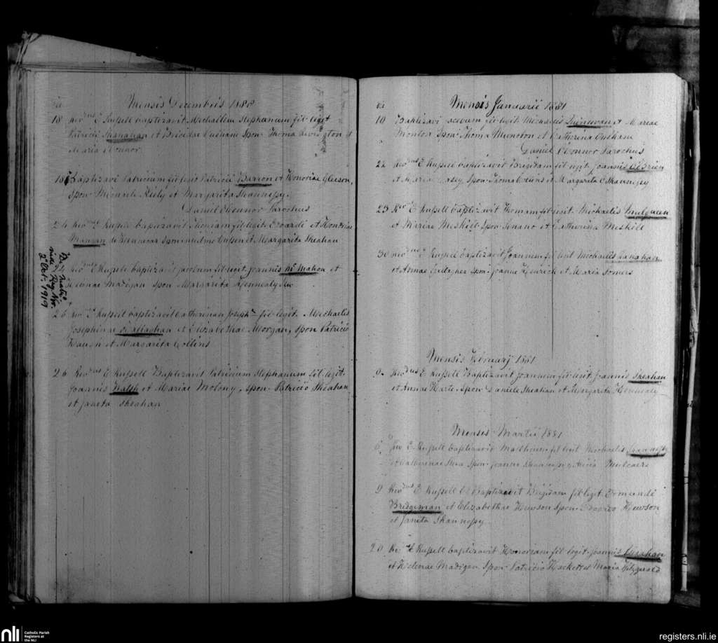 Askeaton; County of Limerick; Diocese of Limerick. Baptisms, Dec. 1880 to Mar. 1881