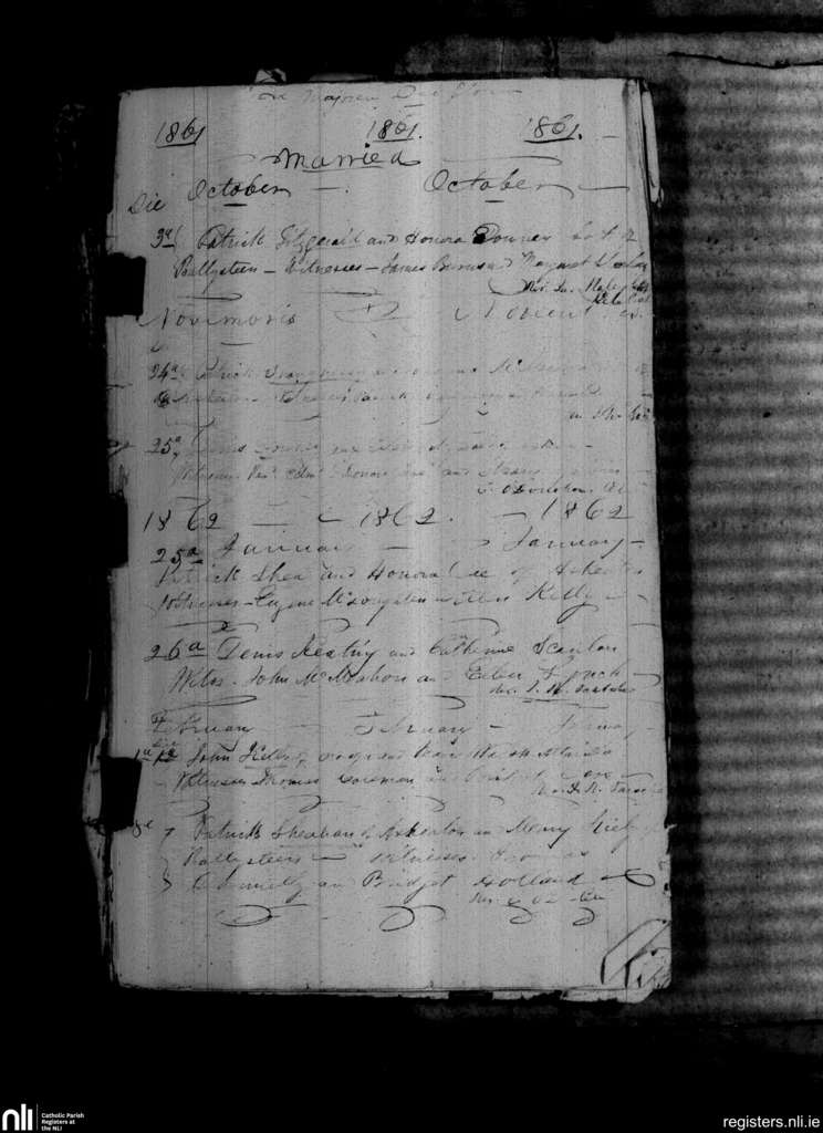 Askeaton; County of Limerick; Diocese of Limerick. Marriages, Oct. 1861 to Feb. 1862