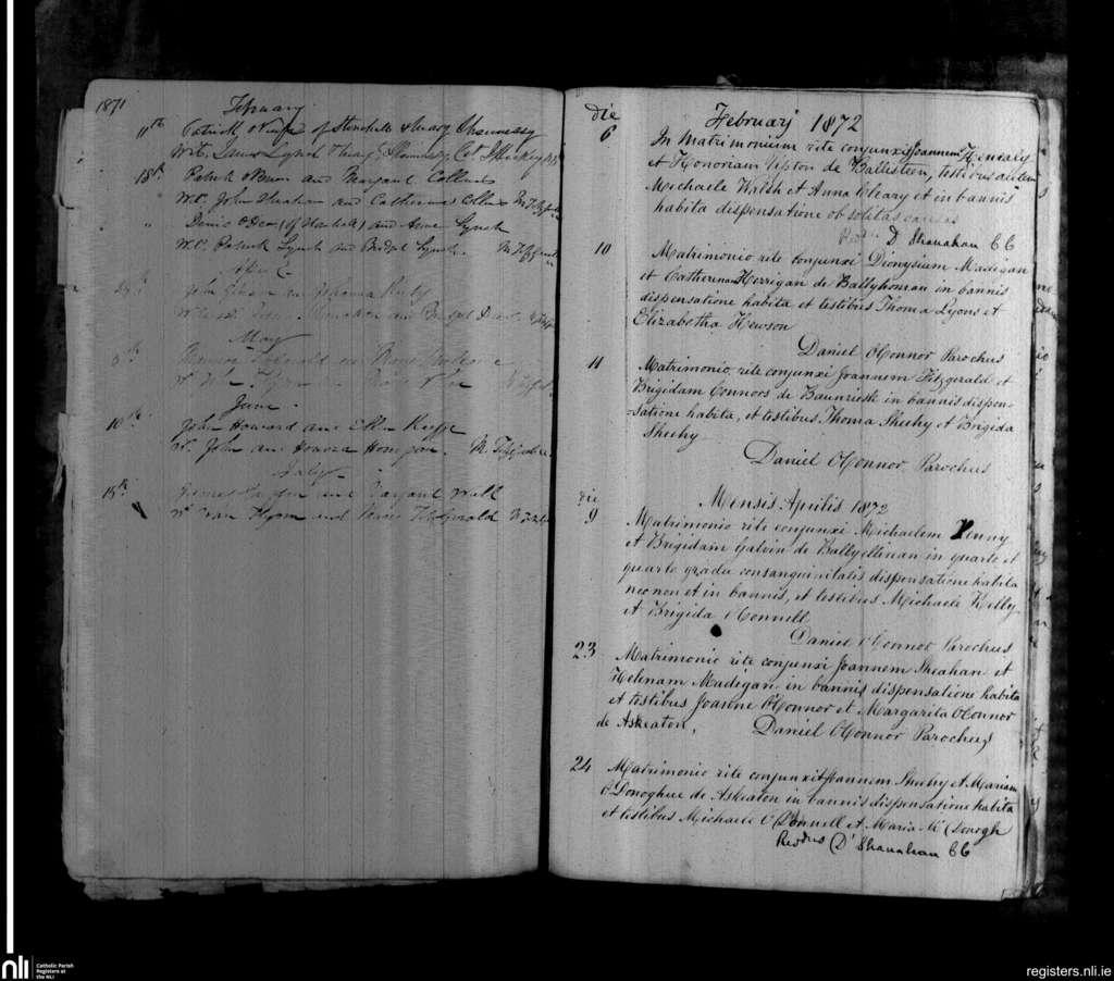 Askeaton; County of Limerick; Diocese of Limerick. Marriages, Feb. 1871 to Apr. 1872