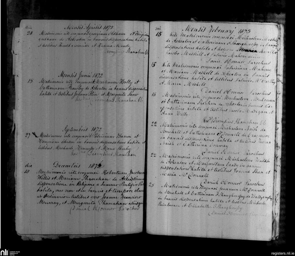 Askeaton; County of Limerick; Diocese of Limerick. Marriages, Apr. 1872 to Feb. 1873