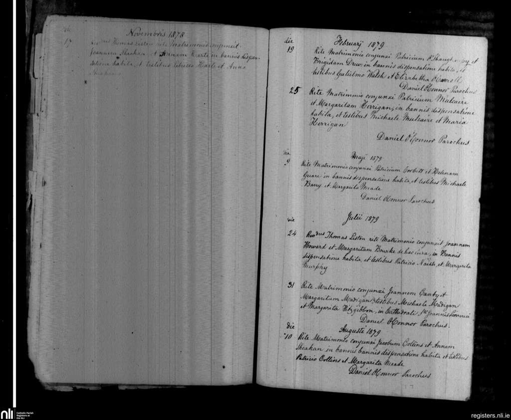 Askeaton; County of Limerick; Diocese of Limerick. Marriages, Nov. 1878 to Aug. 1879