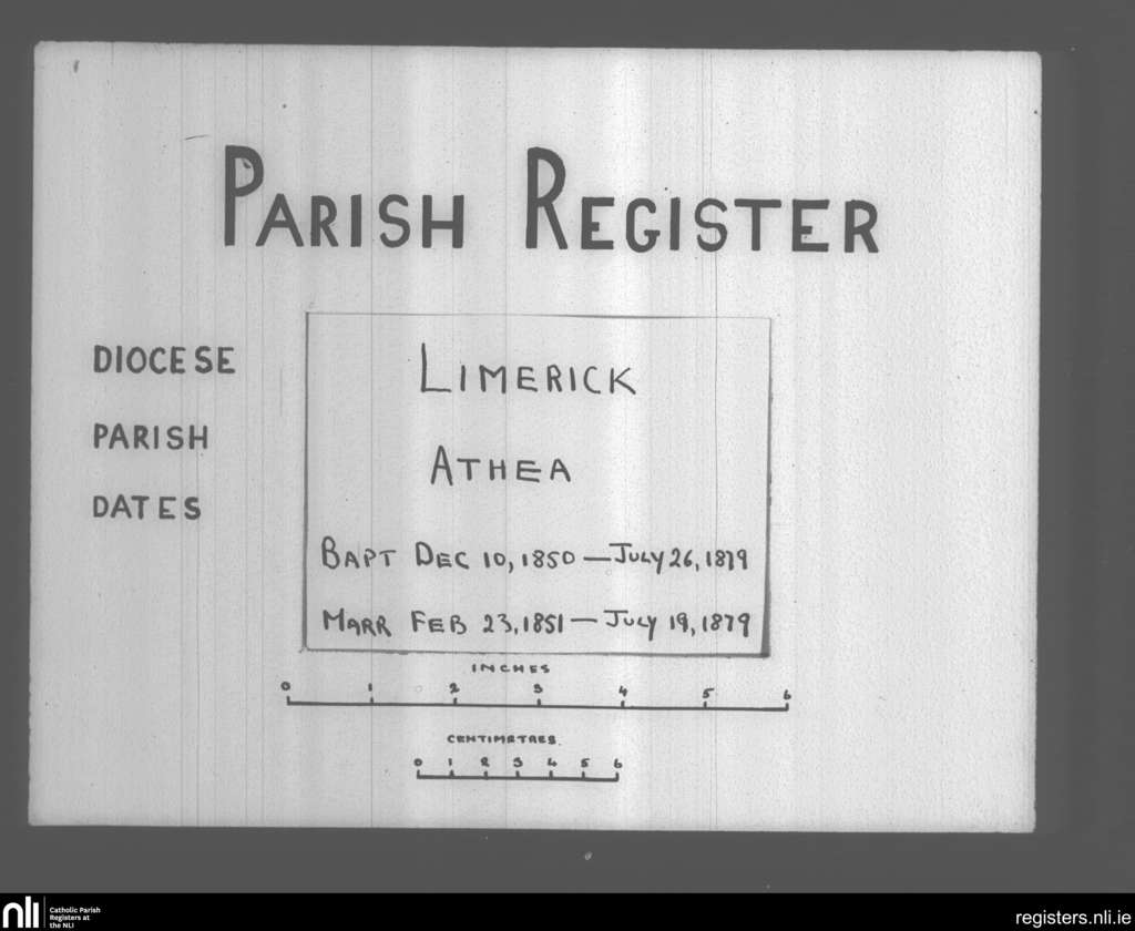 Athea; County of Limerick; Diocese of Limerick. Baptisms, Marriages