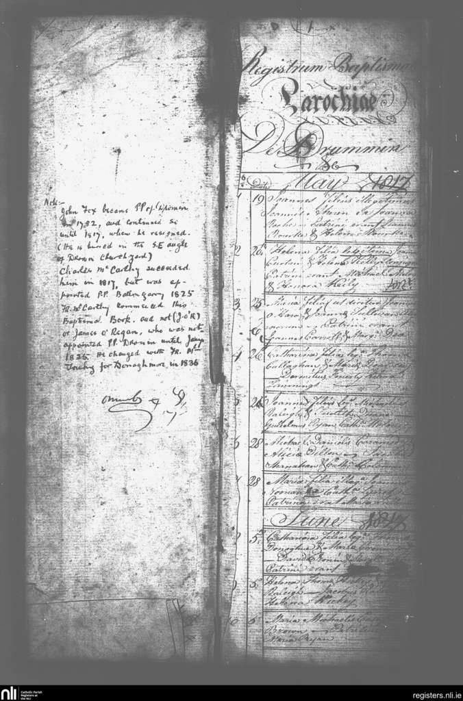 Dromin; County of Limerick; Diocese of Limerick. Baptisms, May 1817 to June 1817