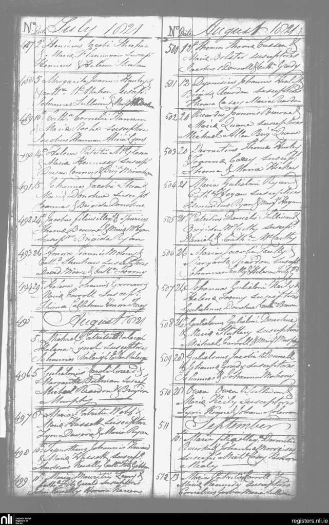 Dromin; County of Limerick; Diocese of Limerick. Baptisms, July 1821 to Sep. 1821