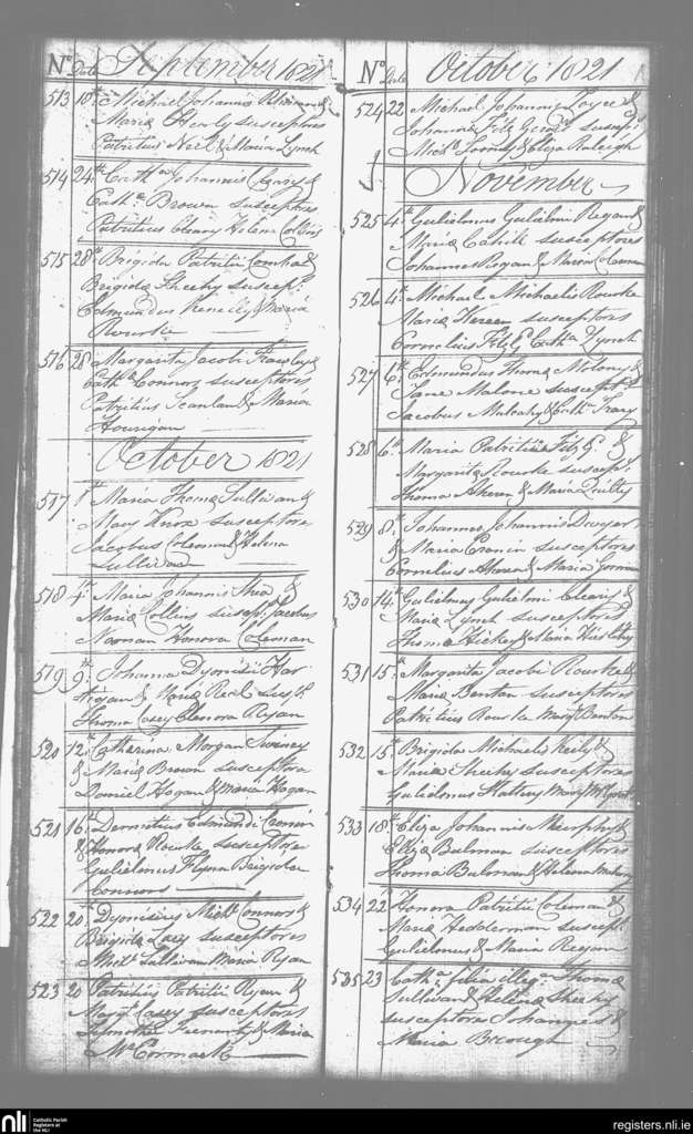 Dromin; County of Limerick; Diocese of Limerick. Baptisms, Sep. 1821 to Nov. 1821