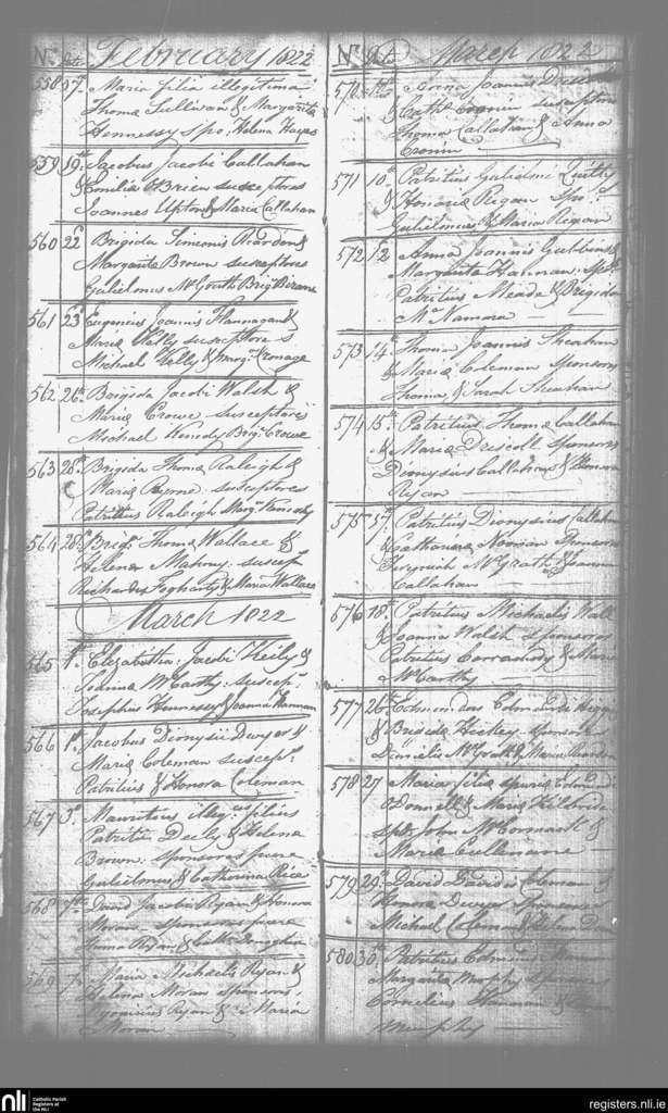 Dromin; County of Limerick; Diocese of Limerick. Baptisms, Feb. 1822 to Mar. 1822