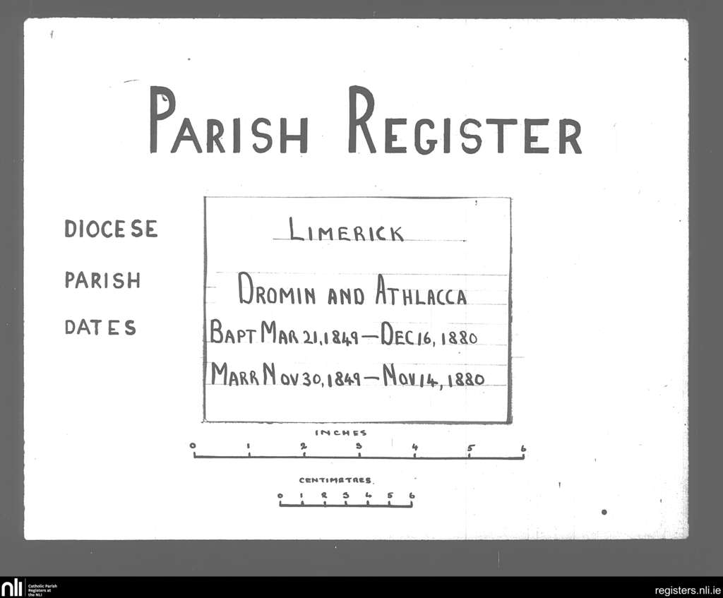 Dromin; County of Limerick; Diocese of Limerick. Baptisms, Marriages