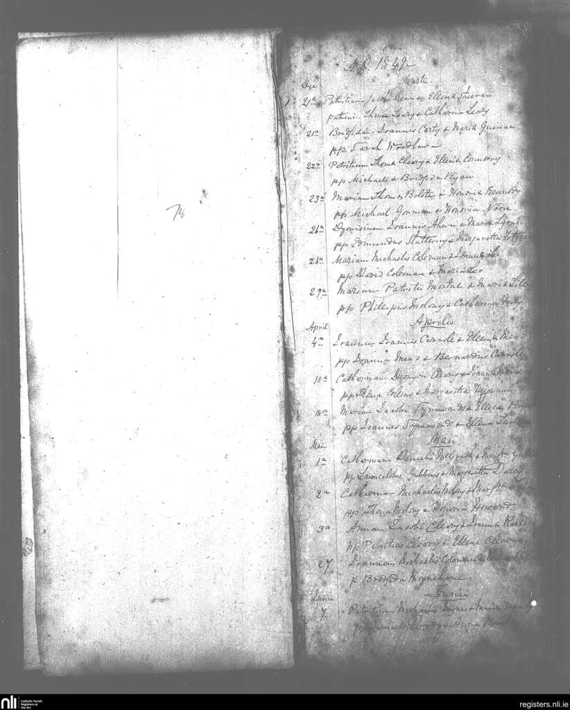 Dromin; County of Limerick; Diocese of Limerick. Baptisms, Mar. 1849 to June 1849