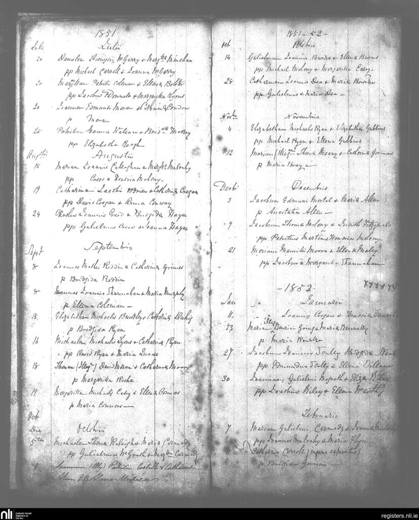 Dromin; County of Limerick; Diocese of Limerick. Baptisms, July 1851 to Feb. 1852