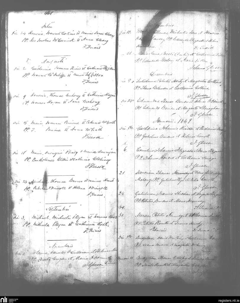 Dromin; County of Limerick; Diocese of Limerick. Baptisms, July 1868 to Feb. 1869