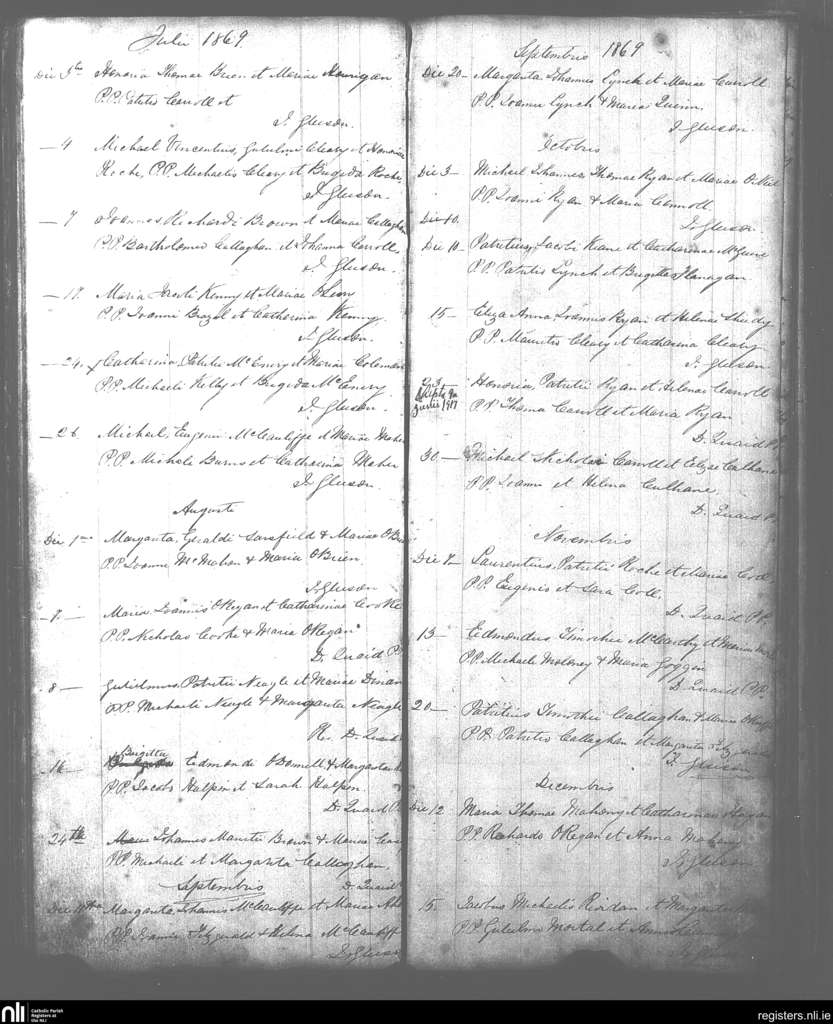Dromin; County of Limerick; Diocese of Limerick. Baptisms, July 1869 to Dec. 1869