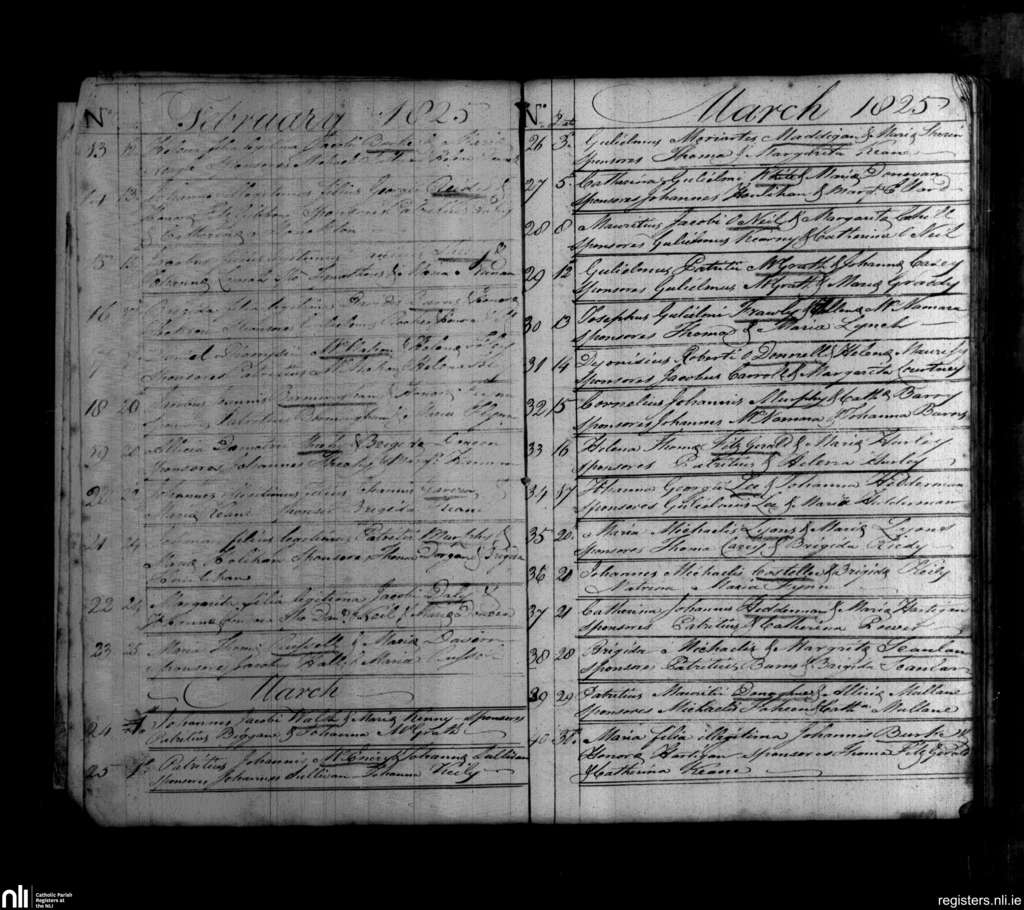Ballingarry; County of Limerick; Diocese of Limerick. Baptisms, Feb. 1825 to Mar. 1825