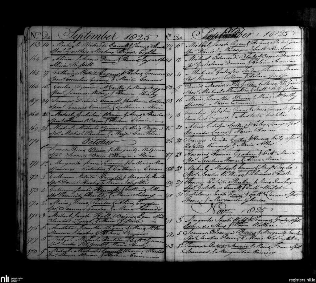 Ballingarry; County of Limerick; Diocese of Limerick. Baptisms, Sep. 1825 to Nov. 1825