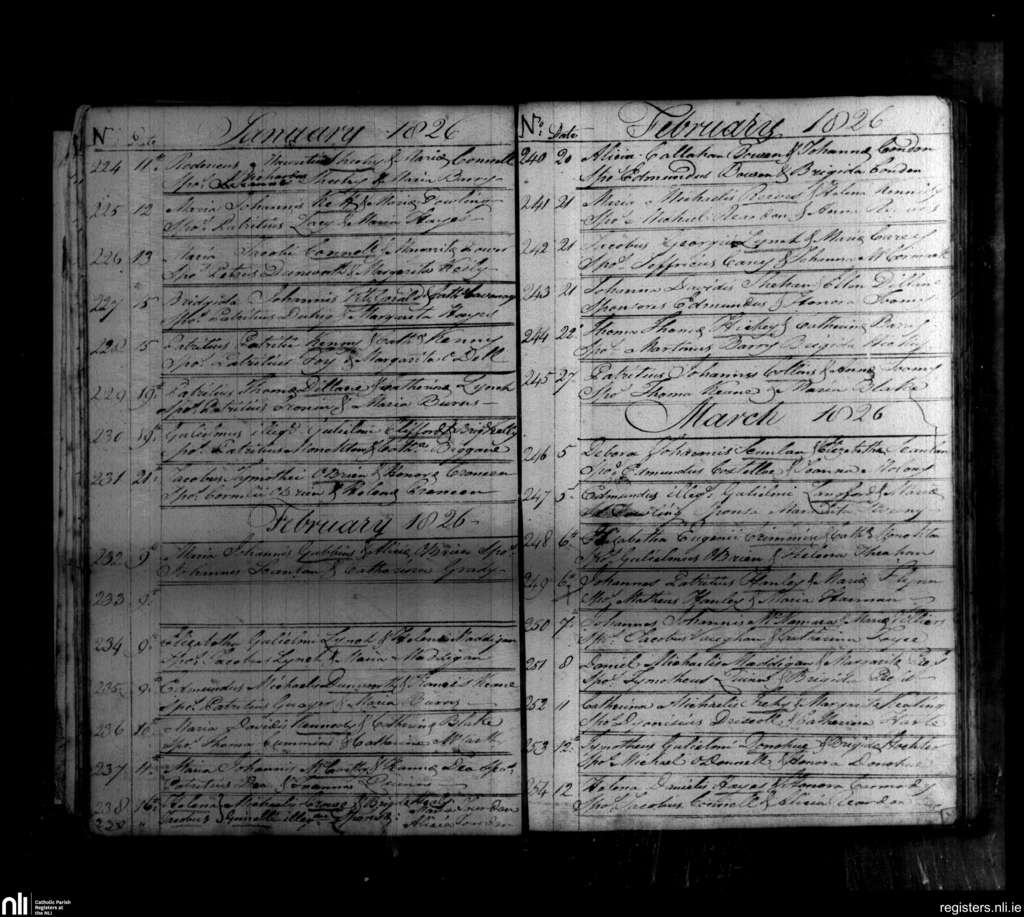 Ballingarry; County of Limerick; Diocese of Limerick. Baptisms, Jan. 1826 to Mar. 1826