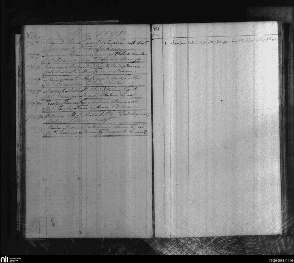 Ballingarry; County of Limerick; Diocese of Limerick. Baptisms, May 1828 to June 1828