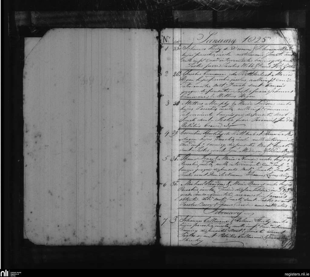 Ballingarry; County of Limerick; Diocese of Limerick. Marriages, Jan. 1825 to Feb. 1825