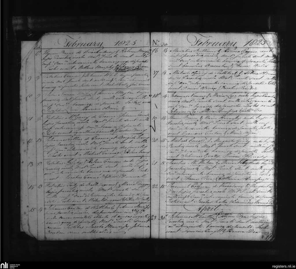 Ballingarry; County of Limerick; Diocese of Limerick. Marriages, Feb. 1825 to Apr. 1825