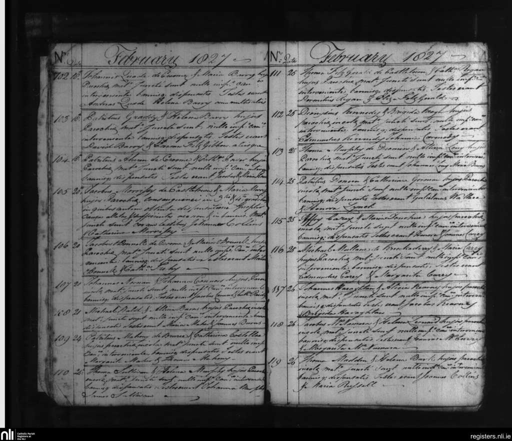 Ballingarry; County of Limerick; Diocese of Limerick. Marriages, Feb. 1827