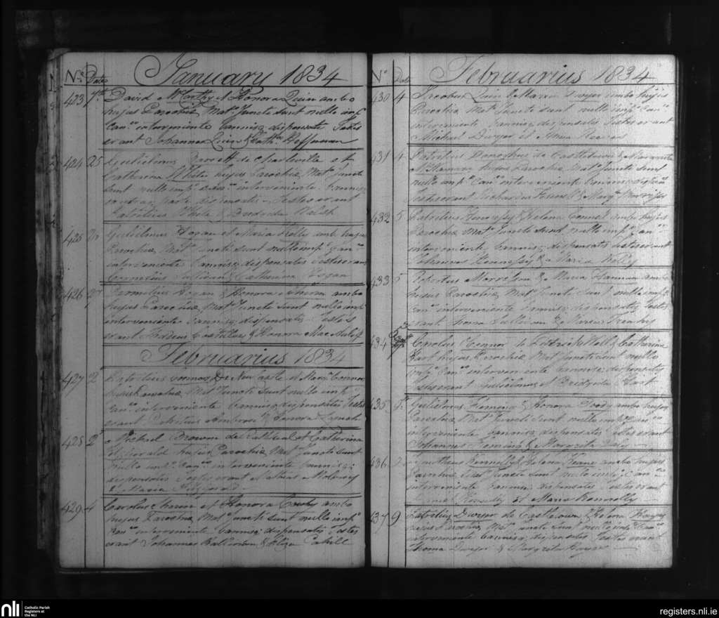 Ballingarry; County of Limerick; Diocese of Limerick. Marriages, Jan. 1834 to Feb. 1834
